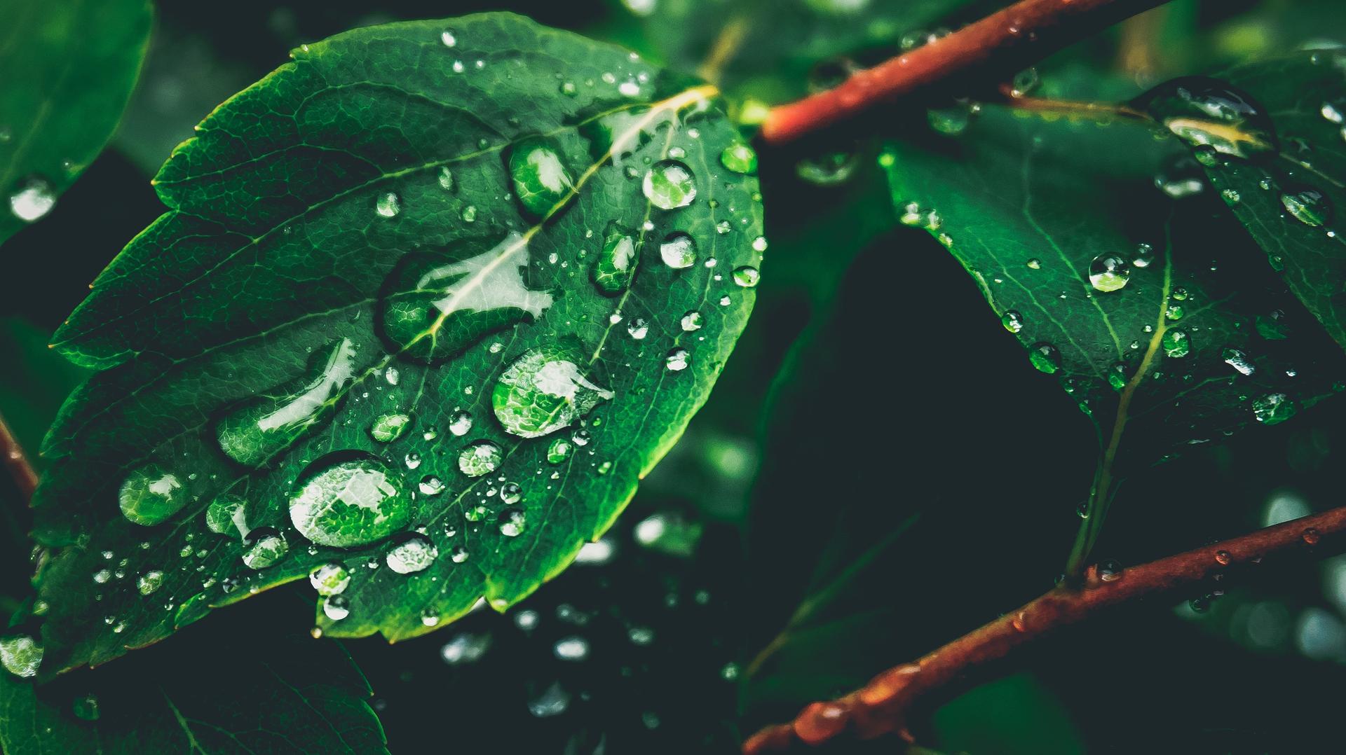 капли на зеленом фоне