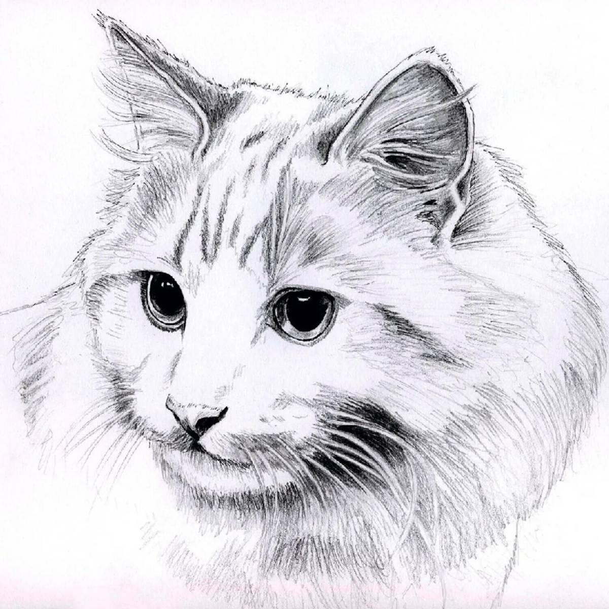 карандашный рисунок кота