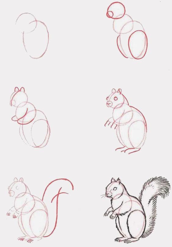 поэтапное рисование белки