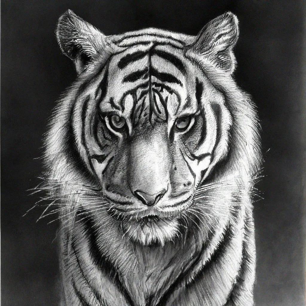 тигр черно белый рисунок